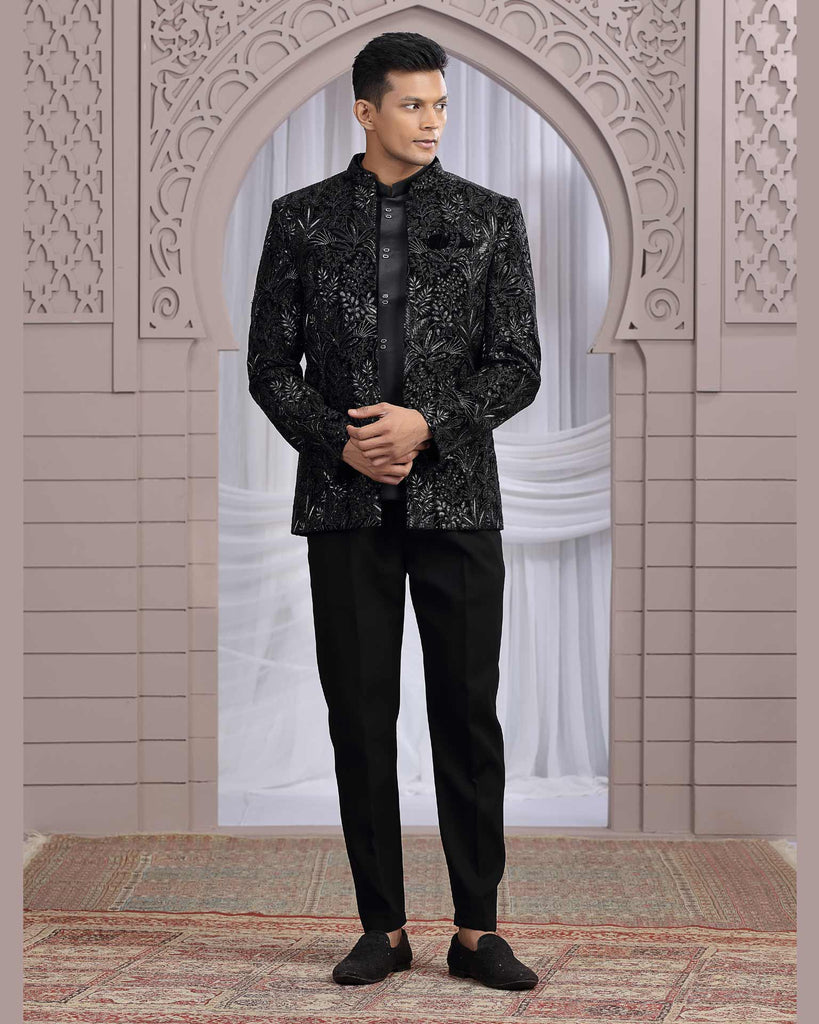 Black Art Silk Fabric Embroidered Men Jodhpuri Coat With Jacket