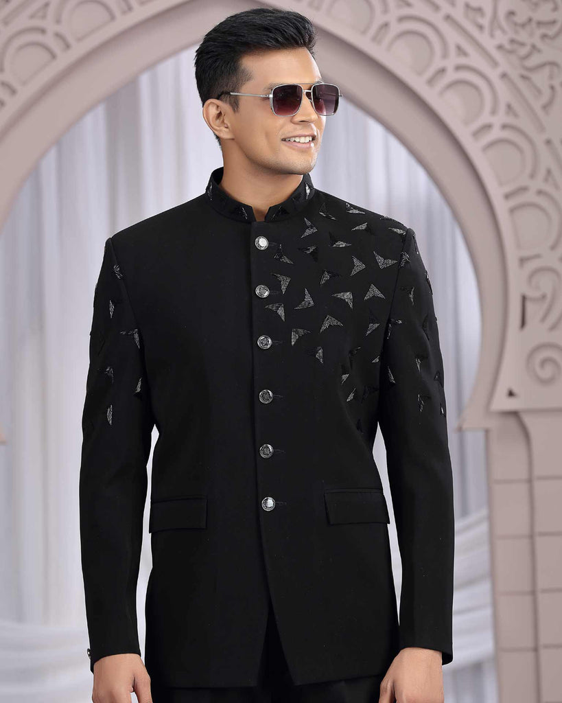 Black Imported Fabric Men Jodhpuri Coat