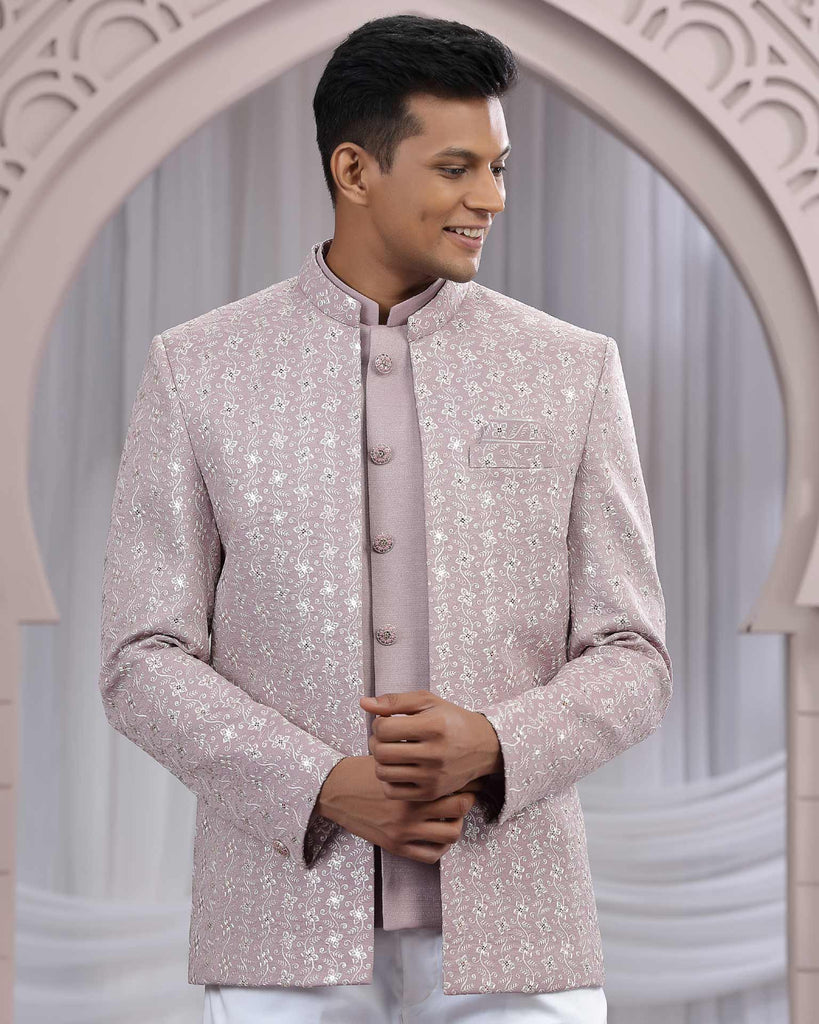 Onion Pink Art Silk Fabric Embroidered Men Jodhpuri Coat With Jacket