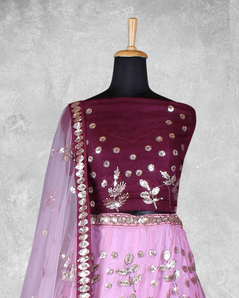Shaded Pink Net Sequins & Thread Work Customized Women Lehenga Choli With Net Dupatta