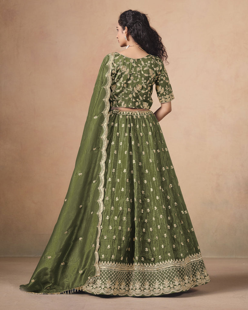 Mahendi Green Zari Sequins Work Organza Silk Unstitched Women Lehenga Choli For Wedding