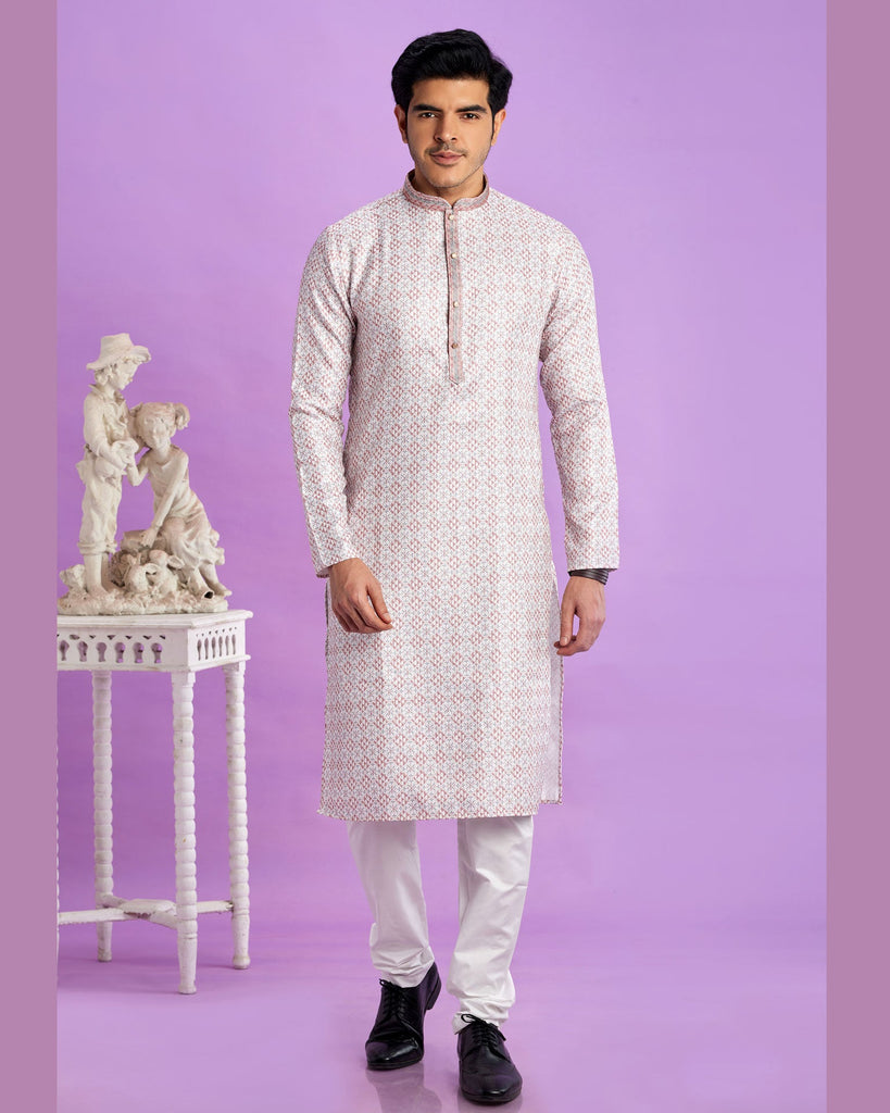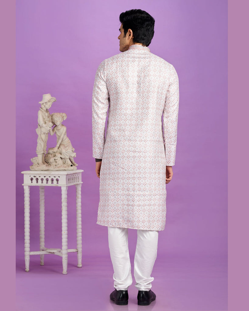 Cream Cotton Digital Print Readymade Man Kurta Set With Off White Churidar