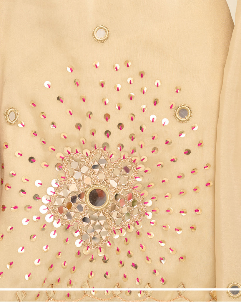 Cream Simar Silk Mirror Work Readymade Woman Sharara Suit